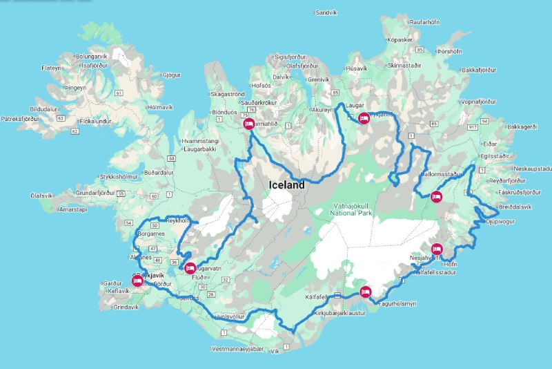 - Vatnajokull – Skaftafell: 150km – 20% OffRoad